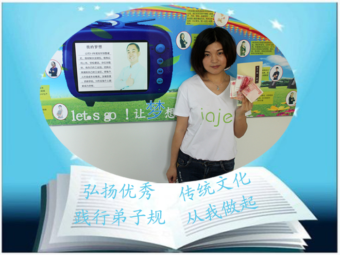 劉總曾說(shuō)《弟子規(guī)》影響他很多,希望公司的嘉人們都能學(xué)習(xí)弟子規(guī),特要求在每周的二、四、六早會(huì)中,都要帶領(lǐng)著所有同事一起朗誦弟子規(guī),大家在劉總的帶領(lǐng)下,有了很高的學(xué)習(xí)熱情。為了激勵(lì)大家主動(dòng)去學(xué)《弟子規(guī)》,公司用現(xiàn)金獎(jiǎng)勵(lì)的方式作為活動(dòng)的開(kāi)展,進(jìn)行《弟子規(guī)》背誦比賽,第一位背出《弟子規(guī)》的獎(jiǎng)勵(lì)五百,第二位獎(jiǎng)勵(lì)三百,后面十位則獎(jiǎng)勵(lì)200元。獎(jiǎng)金激勵(lì)不是目的,是得讓嘉人們自覺(jué)以《弟子規(guī)》來(lái)規(guī)范自己的行為,懂得尊重。為了能更加深入的了解,去領(lǐng)會(huì)其意思。公司每月安排了兩位同事去參加幸福人生講座,直到所有嘉人都學(xué)習(xí)完。在五天四夜的課程中深入的學(xué)習(xí)弟子規(guī)、學(xué)習(xí)中國(guó)的傳統(tǒng)文化。